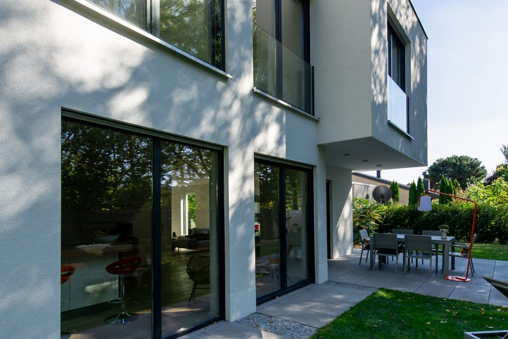 • Glasbrüstungen vor den bodentiefen Fenstern im Obergeschoss